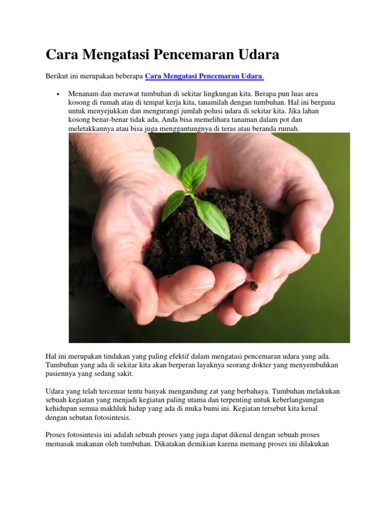 Doc Pencemaran Udara Andhika Nugraha Academia Edu from 0.academia-photos.com Yuk, simak cara mengatasi polusi udara dengan tepat berikut ini, mulai dari diri dan lingkungan sendiri! Bantuan gratis untuk tugas sekolah bantuan gratis untuk tugas sekolah. Dengan adanya fakta yang terlihat saat ini baik itu kematian atau gangguan kesehatan, sudah seharusnya bersama melakukan sesuatu untuk mengubah ini ada benarnya namun mari kita coba untuk mencari tahu cara mengatasi pencemaran udara ini bersama. Pengertian, jenis, penyebab, dampak, dan cara mengatasi. Menekan angka penggunaan kendaraan pribadi dan membudayakan untuk menggunakan angkutan. Beberapa cara yang bisa dilakukan untuk mengatasi udara yang agar tidak tercemar, misalnya Cara mengatasi pencemaran udara sebenarnya sederhana dan cukup mudah. Cara mengatasi pencemaran udara dengan mudah.