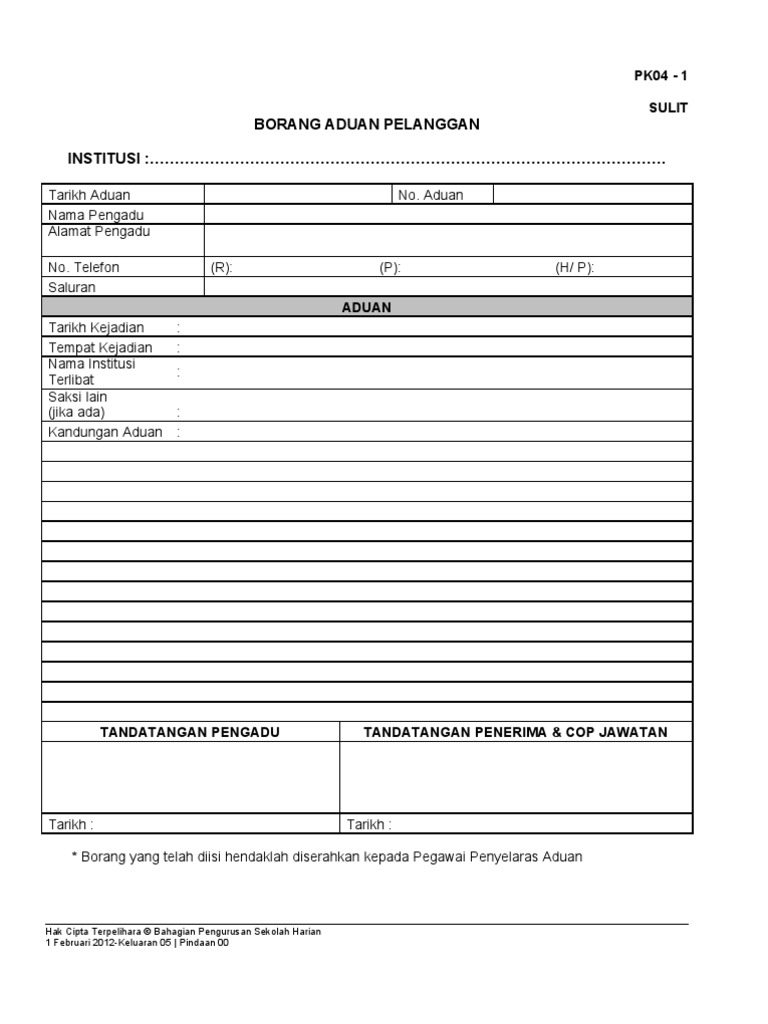 Pk 04 1 Borang Aduan Pelanggan from imgv2-2-f.scribdassets.com 7 contoh kuesioner kepuasan pelanggan doc. Kuesioner kepuasan pelanggan biasanya lebih sederhana dari pada kuesioner penelitian. Pengisian data enrolmen murid borang unjuran e) borang unjuran enrolmen murid bole/' dirnuat turun daripada. borang yang telah diisi hendaklah diserahkan kepada pegawai/guru penyiasat aduan untuk kegunaan pejabat. Contoh borang maklum balas pelanggan. Borang temujanji urusan di kaunter jabatan perancangan bandar. Pengisian borang aduan disediakan oleh: Hak yang diterima karyawan berdasarkan jenis phk.
