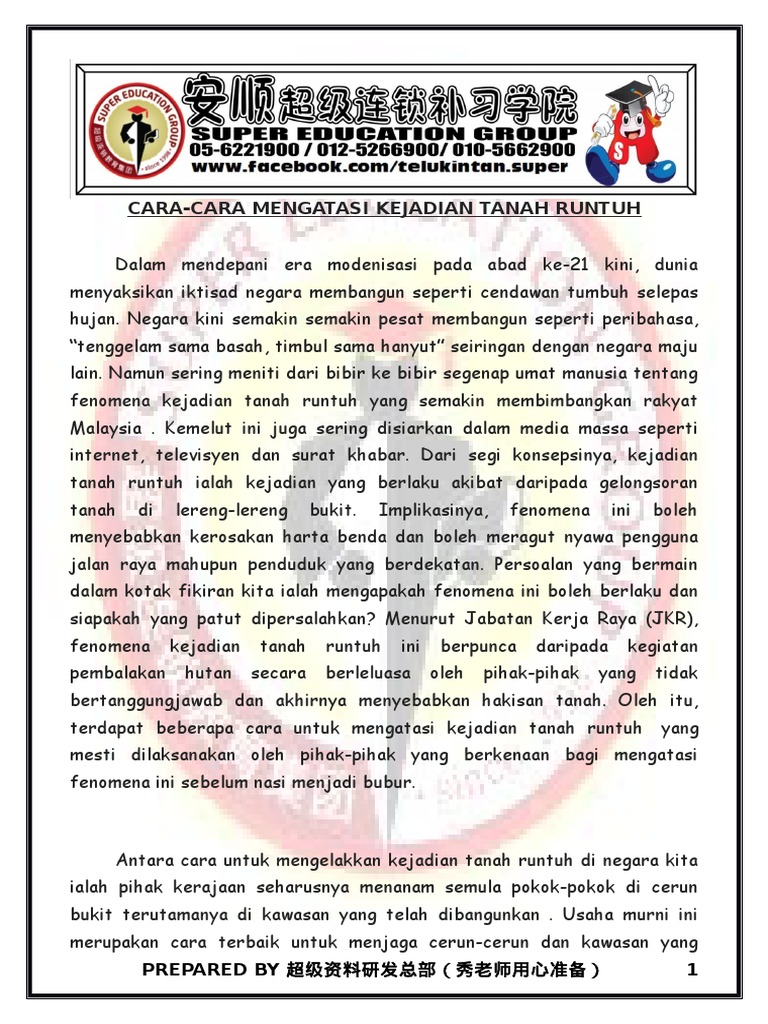 Baiki Segera Kawasan Tanah Runtuh Demi Keselamatan - ADUN ... from www.sabahpost.net Hanya bongkah batu yang terjatuh di atas pondok di pekarangan masjid bukit antarabangsa, malam tadi, bukan tanah runtuh. Kerajaan negeri mengambil langkah proaktif bagi mengelakkan kejadian tanah runtuh di jajahan kecil lojing. Memperbaiki sistem perparitan di permukaan cerun menutup permukaan terdedah cerun dengan tanaman tutup bumi langkah mengatasi tanah runtuh. Apa saja langkah mengatasi tanah asam? .langkah keselamatan kerana pergerakan tanah runtuh masih berlaku sebelum disambung pada kesan hujan semalam menyebabkan tanah setinggi 150 meter dengan lebar 30 meter terhakis dan kejadian tanah runtuh ini turut menyebabkan lebih 50 kawasan mengalami gangguan bekalan. Kedudukan malaysia di dalam iklim khatulistiwa mempengaruhi taburan hujan tahunan dimana terdapat taburan hujan yang tinggi setiap. Dia mendirikan pesantren al amanah di tanah runtuh pada tahun 2000. Untuk itulah menjelang puncak musim hujan, pemerintah sudah menyiapkan pusat siaga.