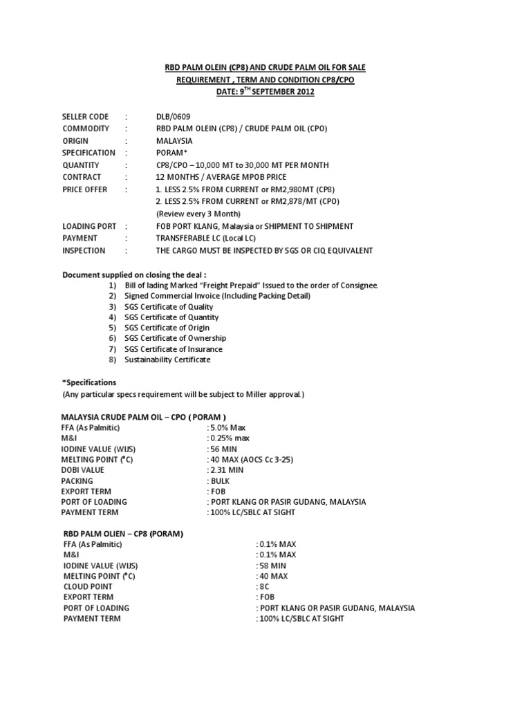 The main objectives of palmoilworld.org are to provide relevant information for palm oil users to make an informed decision and to provide a platform for discussion. Today's palm oil prices with latest palm oil charts, news and palm oil futures quotes. Unit conversion for palm oil price today. Get all information on the price of palm oil including news, charts and realtime quotes. The price release by mpob base on contract registered to mpob. Based on the malaysian palm oil board's (mpob) latest cpo price of rm3,651 per ton, the 8% export duty will translate into rm292 per ton. A reuters survey pegged april inventories to fall * crude prices climbed more than 1% after a major cyber attack that forced the shutdown of critical fuel supply pipelines in the united states. Detailed financial information on crude palm oil futures. Data processed by clal on mpob source. Discover data on palm oil price in malaysia. Alibaba.com offers 1596 mpob palm oil price products. Find the latest market intelligence report on palm oil industry. The malaysian palm oil board (malay: